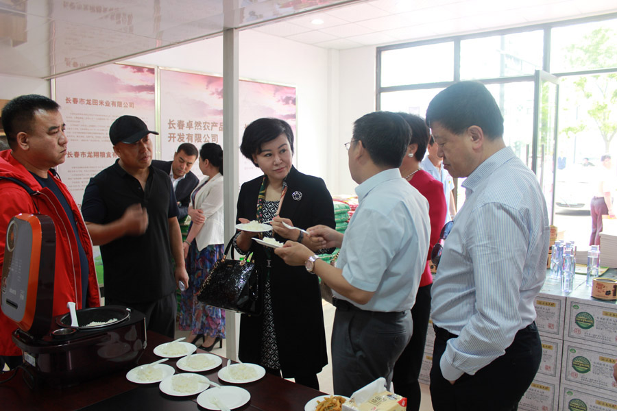 揭牌仪式结束后,农安县粮食局、长春卓然农产品直营店举办了进店参观、现场品尝和开业优惠活动。参观中,农安县粮食局局长陈国辉、长春卓然农产品开发有限公司经理韩智慧,向参观的领导和进店市民详细介绍了每一类型包装的大米品种、品质和价格定位情况,特别推介了卓然米业2016、2017年连续两届获得“中国长春国际农业•食品博览(交易)会”金奖农产品的“绿野仙踪”牌大米、连续两届获得“中国绿色食品博览会”金奖的“悟福”牌大米及龙田米业获得的“2015第十届上海优质大米及精品杂粮展览会”金奖“松江盛宴”牌小粒香米。