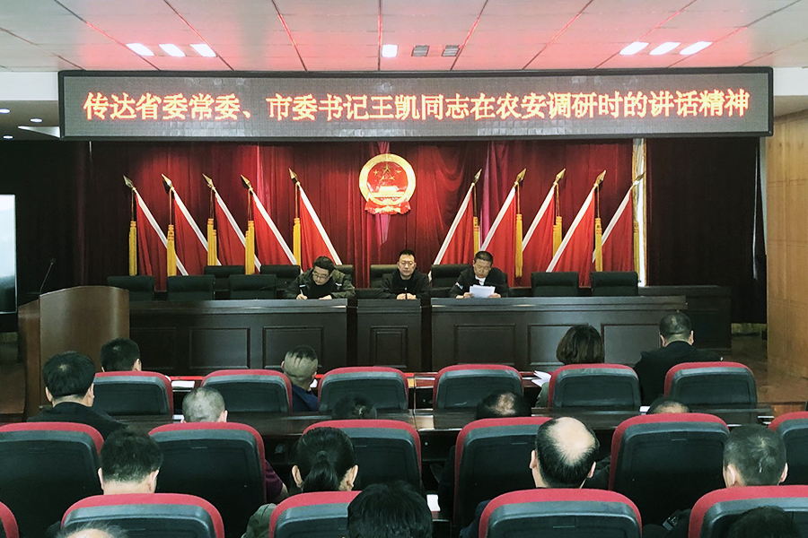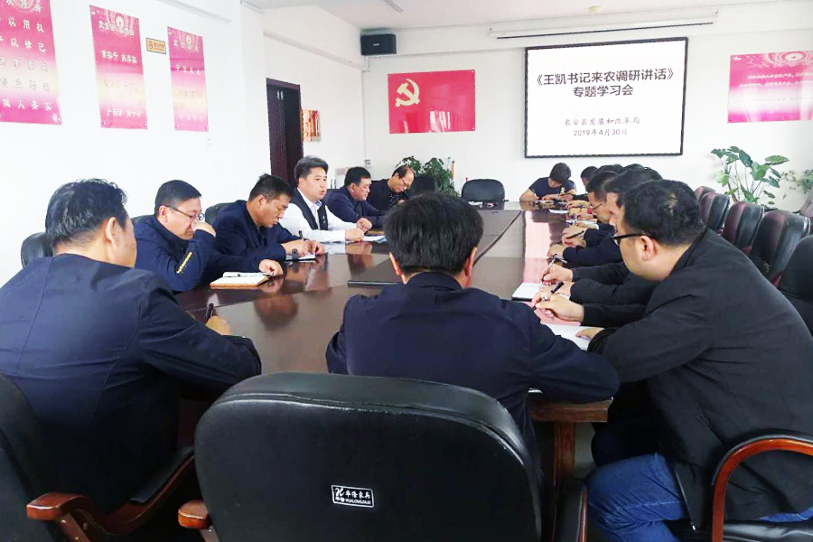 4月30日下午,全县各乡镇、街道、部门召开班子(扩大)会议,学习传达29日省委常委、市委书记王凯到农安调研时的讲话精神,主要从“扎实做好稳增长、精准做好脱贫攻坚、培育壮大龙头企业和支柱产业、推进城市化城镇化建设、全面加强党的政治建设”等方面,传达了王凯书记对农安发展的殷殷期盼。