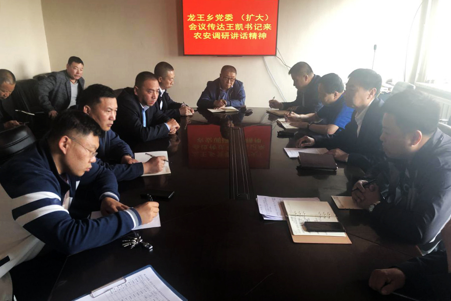 在龙王乡党委(扩大)会上,党委书记陈兴刚结合实际对全乡各村提出具体要求:一要提高政治站位,加强学习教育,迅速传达学习王凯同志讲话精神,积极组织党员干部开展研讨活动,确保内化于心、外化于行;二要结合工作实际,明确发展目标,积极培育发展现代农业三大体系,在林果经济、稻米加工、休闲农业等方面寻求新的突破;三要统筹兼顾,抓好常规工作,统筹开展好党的建设、人居环境整治、脱贫攻坚、扫黑除恶、环境保护等工作,有序推进并形成良好局面。