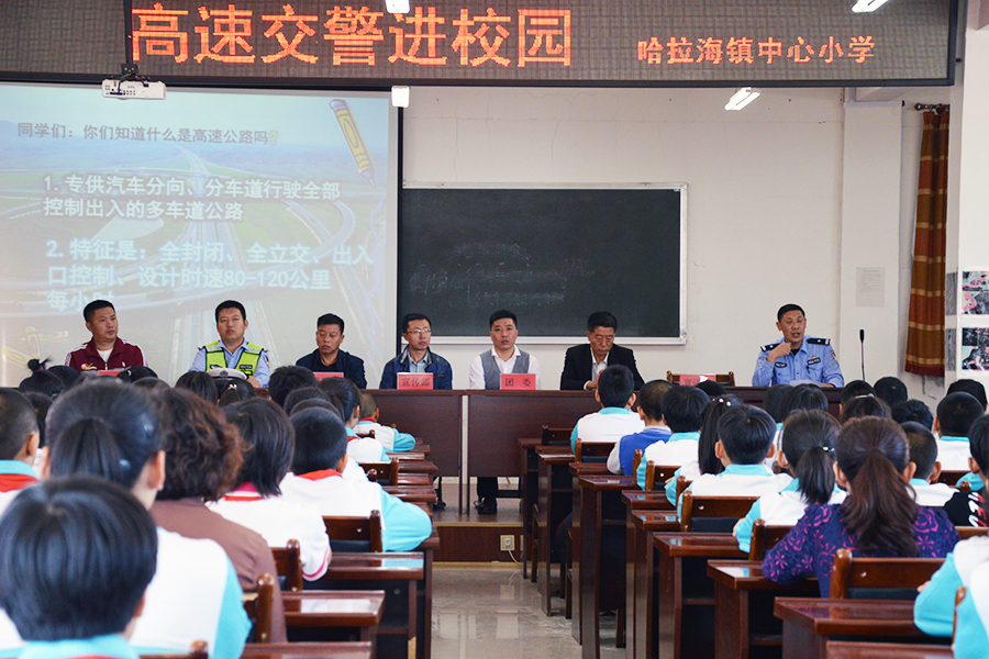9月24日,吉林省高速公路公安局长春分局第五巡逻队到哈拉海镇中心小学开展高速公路交通安全宣传进校园活动,为哈拉海镇中心小学学生上了一堂生动的交通安全课。