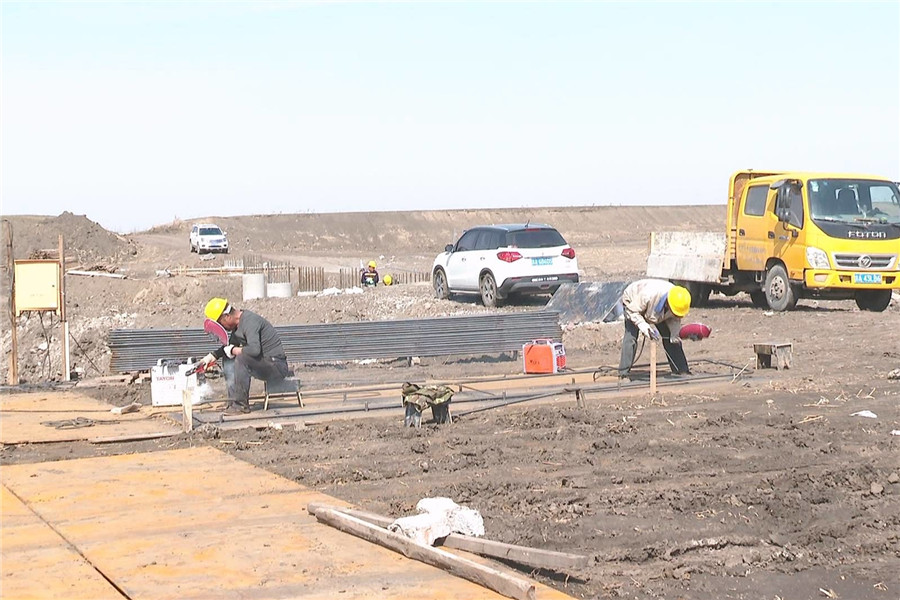 当前正值春修水利黄金季,农安县伊通河重点段治理工程(二期)项目正火热推进中,施工车辆紧张作业,渠道如一条长龙向远处延伸。
