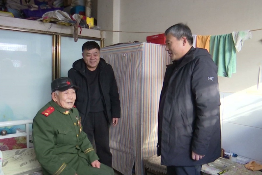 另一位95岁高龄的栾桂昌老人参加过解放战争和抗美援朝战争,战场上的烽火岁月在他身上留下深刻印记。慰问组与其子女亲切交流,关切询问老人的饮食起居和健康状况,感谢他为国家立下的汗马功劳,祝愿老人福寿安康、春节愉快。