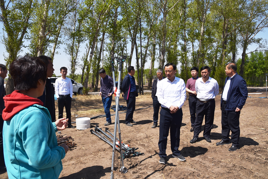视察期间,韩明玉还踏查了小城子乡春季造林、140垧胡萝卜种植地块和哈拉海镇农田水利示范园。