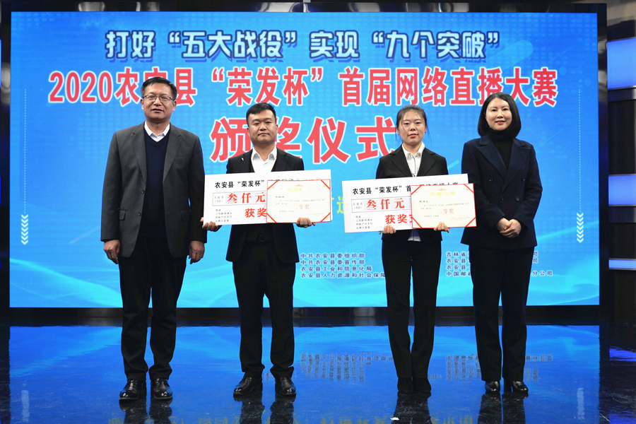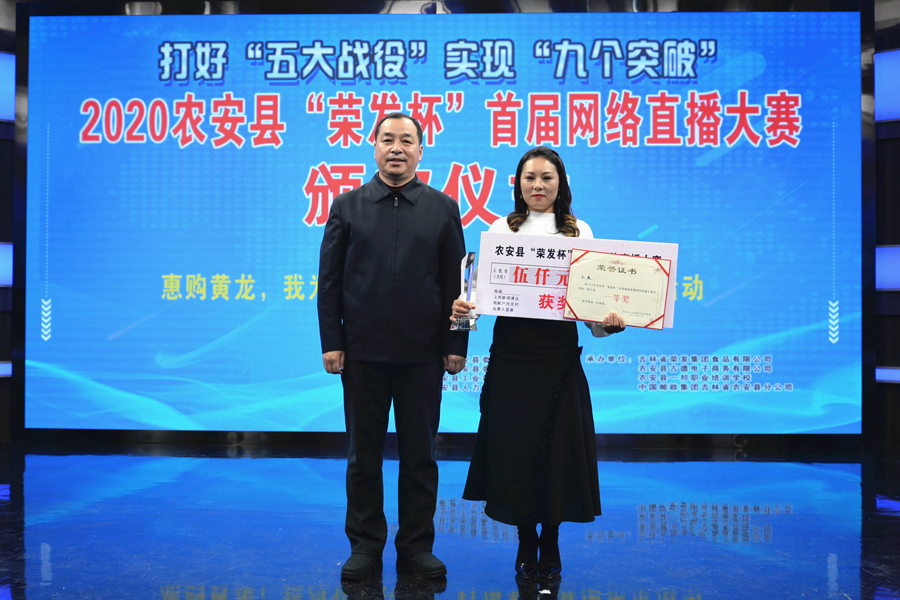 12月9日,由县委组织部、县委宣传部、县工信局、县人社局主办,吉林省荣发集团食品有限公司、农安县古德电子商务有限公司、农安县一邦职业培训学校、中国邮政集团吉林省农安县分公司承办的2020农安县“荣发杯”首届网络直播大赛颁奖仪式在农安县融媒体中心举行。