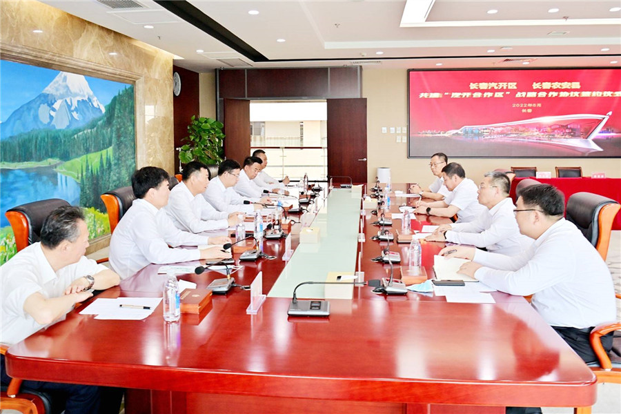 李树国代表农安县委县政府向长春市和长春国际汽车城长期以来对农安经济社会发展的支持表示感谢,并就农安县发展情况做介绍。他说,农安坚定不移地始终坚持“重中之重开发区、唯此唯大上项目”的发展理念,聚焦聚力建设“智慧园区、创新园区、生态园区、效益园区”的目标,紧紧围绕发展汽车产业开展上下游产业链精准招商,逐步发展壮大汽车零部件产业。希望能够借助与汽开区合作的契机,发挥好地缘毗邻的区位优势、“六城联动”的政策优势、以区促县的带动优势和资源产业的互补优势,依托烧锅汽开合作园区,更好地承接汽车配套相关产业,为农安经济社会发展提供强力支撑。