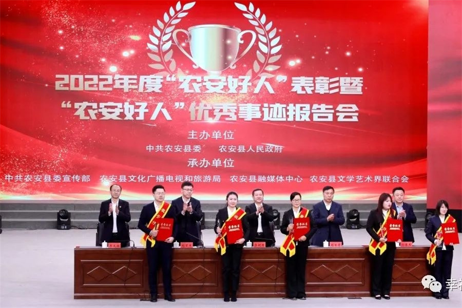 会上,县委常委、宣传部部长、县文明委办公室主任单大维宣读《2022年度“农安好人”表彰决定》;荣获2022年度“农安好人”荣誉称号的代表上台领奖;高宝华等6位历届“农安好人”分别用质朴的语言、生动的事例以及真挚的情感做报告。他们从点滴到江海、从小爱到大爱,集中展示了我县人民群众甘于奉献的崇高品质、干事创业的拼搏精神、任劳任怨的良好形象。