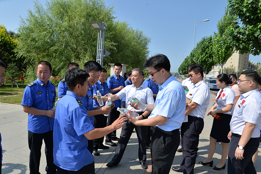 上级驻农单位也踊跃加入到地方的创城工作中,为农安创建全国文明城市添砖加瓦。九台农商银行农安支行与县创城办积极联系,谋划并认真落实“酷暑送清凉”活动计划定制了遮阳帽,购买了矿泉水,并于8月3日上午由创城办领导和九台农商行领导带队,先后深入到南环宪法主题公园等处,带着遮阳帽和冰镇矿泉水,慰问了正在户外顶着烈日作业或值班值岗的环卫工人、行政执法人员、交警、电信移动员工及网信中心、电视台的职工,在炎热的夏日为他们送去一丝丝清凉。