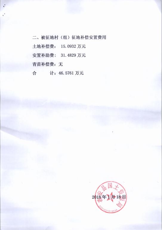 农安县国土资源局征地补偿安置方案公告[2018年第1号]